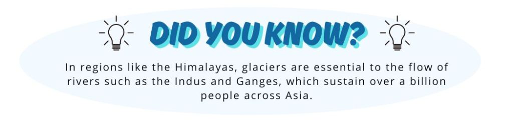 Glaciers feed critical rivers that support agriculture, industry, and drinking water in many regions. In areas like the Andes, Himalayas, and even parts of Europe, glacier-fed rivers are the backbone of local economies.