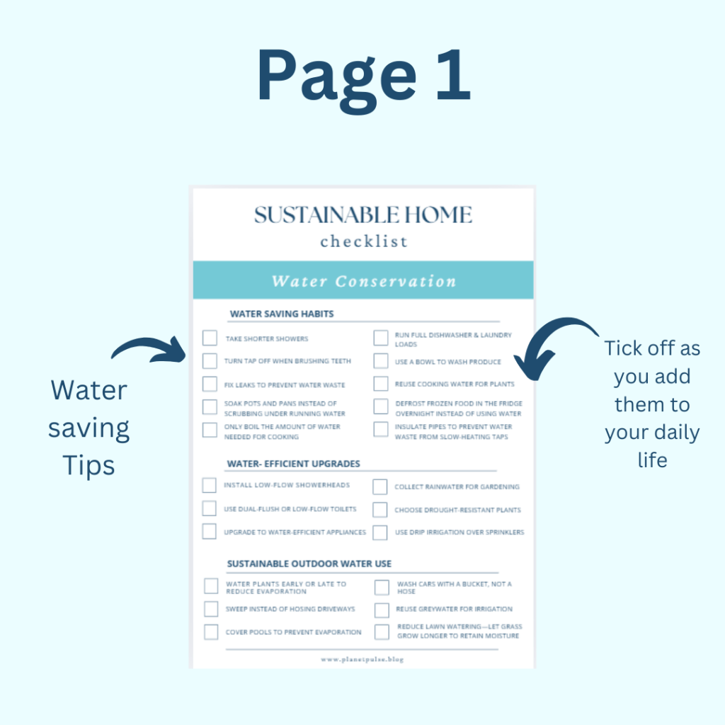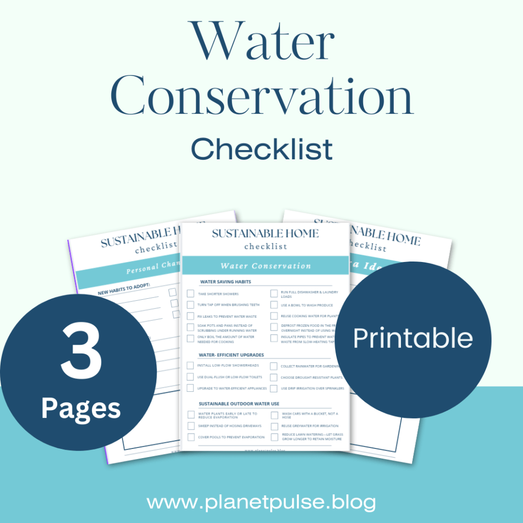 This 3-page printable helps you track and implement water-saving habits. It includes:
